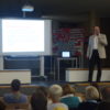„Mit dem November beginnen die dunklen Tage, in denen das Tageslicht ein kurzes Dasein fristet und die Sonne sich meist hinter einer dichten Wolkendecke versteckt. Unter dem Titel „Licht und Dunkelheit“ stellte nun das Spielplatzprojekt im Erloch, hinter dem die städtische Kinder- und Jugendförderung steht, die Auswirkungen der Jahreszeit in den Mittelpunkt. Los ging es mit dem Vorlesen einer Geschichte, zu der Monika Varga und Petra Ortmann-Sieg die Kinder auf und um die Couch im großen Saal des Sophie-Kehl-Heims baten. Die Geschichte hantelte von den Malonen, die eins hinter so hohen Bergen wohnen, dass dort niemals die Sonne hinkam. Ohne die Sonne waren die Menschen finster und niemand konnte den anderen leiden. Eines Tages kam ein Wanderer und erzählte wunderbare Geschichten über die Sonne. Daraufhin trugen die Malonen die Berge ein wenig ab und riefen immer wieder die Sonne an. Und dann geschah das Wunder: Die Sonne kam und trug die Freude in das Herz der Bewohner. Während des Vorlesens erklärte Monika Varga die Begriffe Verlangen und Sehnsucht, die aus dem Herzen erwachsen können. Wie sich auf Nachfrage herausstellte, kennen die Kinder das Gefühl. „Mit Gummibärchen und Pferd“ beschrieb Scarlett (8) ihre regelmäßigen Sehnsüchte. Nach dem Vorlesen wurde gemalt: Am Tisch hatte Petra Ortmann-Sieg zuvor schon dunklen Pappkarton zum Bemalen mit Wachsmalkreide ausgeschnitten. Auf den durften die Kinder „Hell- oder Dunkelbilder“ malen. Noch von der Sonnengeschichte der Malonen beeinflusst, benutzten die meisten mit gelb, orange oder rot leuchtende Farben. Beim Anzünden von Kerzen wurde die Wahrnehmung und Bedeutung von Licht weiter geschärft, genauso wie mit dessen Vertonung. Mit Triangel oder Xylophon wurden helle und freundliche Töne erzeugt, denen standen dumpfe und dunkle Töne mit der Trommel gegenüber. Das Spielplatzprojekt gibt es seit 2010. Jeweils einmal im Monat, am 2. Donnerstag, trifft man sich nachmittags auf dem Spielplatz in der Luisenstraße oder im Sophie-Kehl-Heim. Das Motto des Nachmittags für die Kinder zwischen sechs und zwölf Jahren ist meist der Jahreszeit angepasst. Für das Halloween-Fest im letzten Monat maskierte sich die riesige Zahl von 35 kleinen Erloch-Bewohnern. Sonst rangiert die Zahl der Kinder zwischen acht und 16. Die Kinder mit Migrationshintergrund nehmen dabei einen Schwerpunkt ein. In den letzten Monaten wurde der Treffpunkt von 15.30 auf 16 Uhr verlegt. „Wir merken deutlich den Trend zu den Ganztagsschulen, welche die freie Zeit der Kinder am Nachmittag minimieren“, sagt Petra Ortmann-Sieg. Einige Kinder kämen auch verspätet, um zwischen Schule und Projekt überhaupt noch ein paar Minuten zu Hause zu verbringen. Neben dem Spielen wird in letzter Zeit auch verstärkt getanzt. „Die Kinder wollen tanzen und danach soll eine Jury entscheiden, wer’s am besten gemacht hat. Das TV-Programm zu Hause lässt grüßen“, berichtet Monika Varga. Mit der jüngsten November-Ausgabe des Spielplatzprojekts werden einige der jungen Erloch-Bewohner das Licht und die Sonne sowie deren Bedeutung für den Menschen fortan in anderen Augen sehen. Das Bewusstsein öffnete schon die einfache Feststellung, was Kinder machen, wenn die Sonne scheint: „Natürlich draußen spielen.“