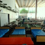 Im Anschluss an den Vortrag fuhren alle zusammen zur Registrierungsstelle für die ankommenden Flüchtlinge in den sogenannten „Paul-Hallen“. Dort arbeiten Mitarbeiter des Bundesamts für Migration und Flüchtlinge (BAMF), der Bundespolizei und der Bundeswehr zusammen um der, sich inzwischen durch die Schließung der Balkanroute etwas „beruhigten“, Situation Herr zu werden. Vertreter des BAMF, der Bundespolizei und der Bundeswehr erläuterten hier ausführlich Arbeitsabläufe der Registrierungsstelle und ihre jeweiligen Aufgaben. Auch einen Teil der „Bearbeitungsstraßen“ für die Registrierung, durch die bis vor wenigen Wochen und Monaten noch täglich tausende Flüchtlinge durchlaufen mussten, konnten die Teilnehmer besichtigen.