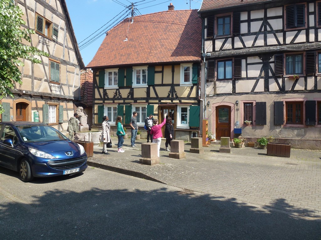Nach einer knapp 3-Stündigen Reise wurde die Gruppe des Jugendforums und der drei extern-interessierten Mitfahrer dann in Bouxwiller von Bürgermeister Alan Janus, der Museumsleiterin Frau Lickel und der Stadträtin Frau Roth sehr herzlich empfangen. Nach einer interessanten Führung durch das neue Museum von Bouxwiller, bei welcher das Jugendforum viel über die Geschichte von Bouxwiller und die gemeinsame Vergangenheit der beiden Städte erfahren konnte, wurde ein kleiner Snack zum Mittag gereicht. Im Anschluss wurden gemeinsam Ideen und Möglichkeiten zur weiteren Vertiefung der Städtepartnerschaft in den Bereichen Schule, Jugendarbeit und der Vereinslandschaft ausgearbeitet, ohne die bereits bestehenden Kontakte, beispielsweise die des Heimat- und Geschichtsvereins, die im Bereich der Kunst geknüpft wurden oder auch die des Angelsportvereins „Petri Heil“ zu vernachlässigen. Nach „getaner Arbeit“ erhielt das Jugendforum schließlich noch eine Stadtführung durch die Museumsleitung Madame Lickel und fuhr gegen 16.30 Uhr zur Jugendherberge nach Ortenberg.