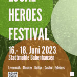 Babenhausen aufgepasst: Am Wochenende 16. bis 18. Juni 2023 findet das Local Heroes Festival mit runderneuertem Konzept erstmals auf dem Areal der historischen Stadtmühle und neu ab diesem Jahr auch in Kooperation mit McKenna’s Theater statt. Das bunte und vielfältige Local Heroes-Programm stellt stets Künstler aus Babenhausen und der Region in den Fokus und bietet an diesem Wochenende nahezu jeder Kunstrichtung eine Bühne.