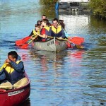 Am zweiten Tag der Freizeit stand Kanufahren auf der Lahn auf dem Programm. Bei „Kaiserwetter“ fuhr man mit Zehnerkanadiern, 20 Kilometer flussabwärts. Es mußte auch geschleust werden. Welch ein Abenteuer und so viel Spaß!