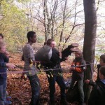 Der Donnerstag war anfänglich verregnet. Regenbekleidung wurde verordnet. Die Jugendlichen wurden in Kleingruppen an bestimmten Punkten in der Landschaft abgesetzt. Natürlich waren auch Betreuer dabei. Die Lösung dieses Tages hieß Geocaching. Um die Koordinaten für das nächste Ziel herauszufinden, mussten kleine Aufgaben gelöst werden. Und dann ging es los, kreuz und quer durch Dick und Dünn. Nach einer Stunde kam dann endlich die Sonne heraus. Den Kindern machte es sichtlich Spaß, abwechselnd mit dem Navigationsgerät den Weg zu bestimmen.