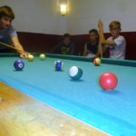 Nach der Rückankunft auf dem „Donnerskopf“ konnten sich die Teilnehmer/innen dann noch einmal in verschiedene Angebote begeben oder sich schon auf den Abschlussabend vorbereiten. Nach dem gemeinsamen Abendessen und einem Gruppenspiel für alle startete in der „Kellerbar“ die Abschlussdisco. Die jungen „DJ’s“ konnten nahezu jeden Wunsch der Gäste aus den verschiedensten Musikgenres bedienen, sodass jeder auf seine Kosten kam. Alternativ zum Tanzen konnte man auch mit Tischfußballspiel, Gesellschaftsspielen oder Billard den Abend füllen.
