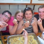 Am nächsten Morgen segelten wir gegen 10.00 Uhr, einer etwas humaneren Zeit, in Richtung der ersten nordfriesischen Insel Terschelling. Nach etwa sechs Stunden auf dem Meer, erreichten wir diese erste Insel am Nachmittag. Hier ging es direkt gemeinsam in die Stadt, um einen Supermarkt und andere Geschäfte aufzusuchen, denn die Lebensmittelvorräte waren für die nächsten Tage aufzufüllen. Das Einkaufen in Holland stellte sich anfangs doch als etwas schwierig dar: Weißbrot in allen Varianten, aber kein vernünftiger Laib Bauernbrot; Schoko- und Vanilleflocken sowie Früchtehagel als Brotbelag zum Frühstück, „Enkhuizer Jodekoeken“ – wohl Kekse, „Gekookte Worst“ – so etwas wie Fleischwurst …!? Andere Länder – andere Sitten! Zum Glück hatten wir zuvor in Deutschland bei ALDI groß eingekauft! Wieder auf dem Schiff, fing die „Küchencrew“ gleich an, das Abendessen vorzubereiten, denn auch das Kochen gehörte mit zum Programm. Jeder hatte während der Freizeit Frühstück, Mittagessen und Abendessen vorzubereiten bzw. zu kochen und auch das Spülen und Abtrocken wurde eingeteilt – jeweils unterstützt durch einen Betreuer.