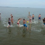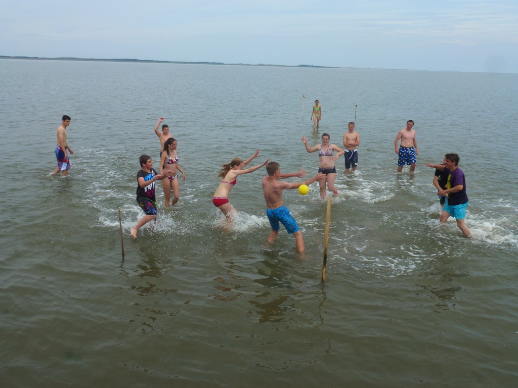„10.00 Uhr Abfahrt“ hieß es am Dienstagmorgen – wie immer nach einem guten Frühstück. Die Reise ging heute in Richtung Ameland. Nach knapp drei Stunden auf dem Meer fuhren wir aus der Fahrrinne heraus, ankerten und warteten die Ebbe ab. Entspannung stand nun ganz oben auf dem Programm, während das Wasser um uns herum immer weniger wurde. Als wir schließlich einen Wasserstand von nur noch knapp 20 cm erreicht hatten, erlaubte unser Skipper, dass wir uns in die „Fluten“ stürzen durften. Das sogenannte „Trockenfallen“ war von Anfang an ein voller Spannung erwartetes Event der Jugendlichen. Viele Spiele, sowie das Erkunden des Wattes machten diese Aktion zu einem einzigartigen Erlebnis. Als das Wasser mit der Flut wieder zurück gekommen war, fuhren wir spät am Abend zurück nach Terschelling, um dort im Hafen zu übernachten. Als Abendprogramm stand heute eine Geburtstagsfeier auf dem Plan. Eine der Babenhäuser „Wasserratten“ durfte seinen Jahrestag auf dem Schiff feiern. Während die restliche Crew tagsüber eine Überraschung unter Deck vorbereitete, musste das Geburtstagskind auf Deck kräftig anpacken und nach Seeungeheuern oder ähnlichem Gefahren Ausschau halten – ein tolles, eigens entwickeltes und ausgeklügeltes Ablenkungsmanöver unseres Maates Niels. Glücklicherweise konnte dieser die doch etwas merkwürdige anmutende Aufgabe glaubhaft erklären, so dass die Überraschung tatsächlich eine Überraschung blieb.