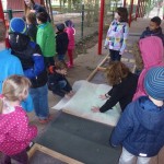 Drei Tage lang tauchten die Babenhäuser Kinder in die Welt der Sinne ein. Beim Barfußpfad beeinflusste die kühle Witterung allerdings das Treiben. So wollte Sinja ihre unbekleideten Füße dann doch nicht allzu lange in den Sand stecken: Der Grund liegt in einer anderen Sinneserfahrung: „Im Urlaub am Strand ist der Sand immer viel, viel heißer“, sagt sie.“