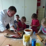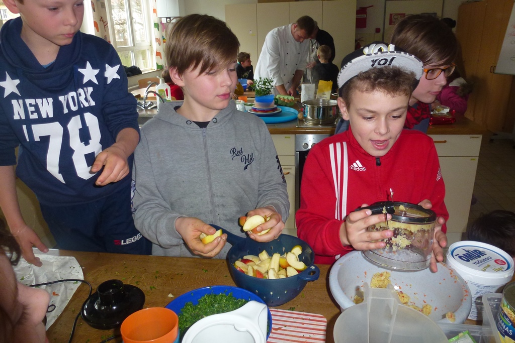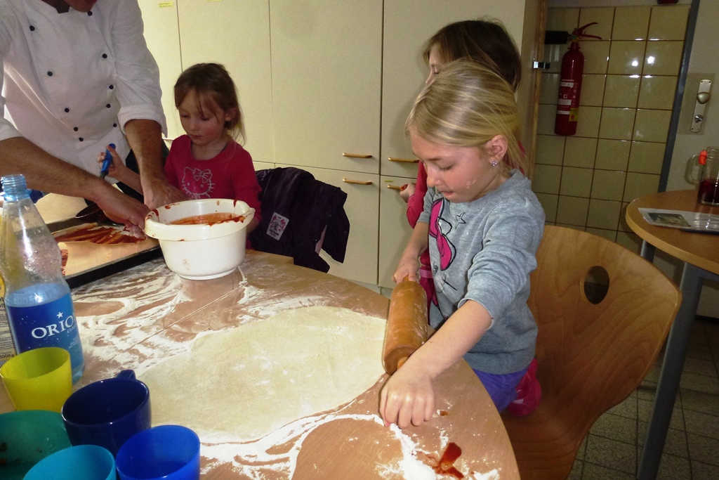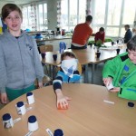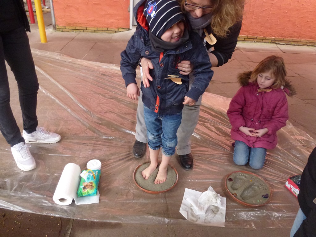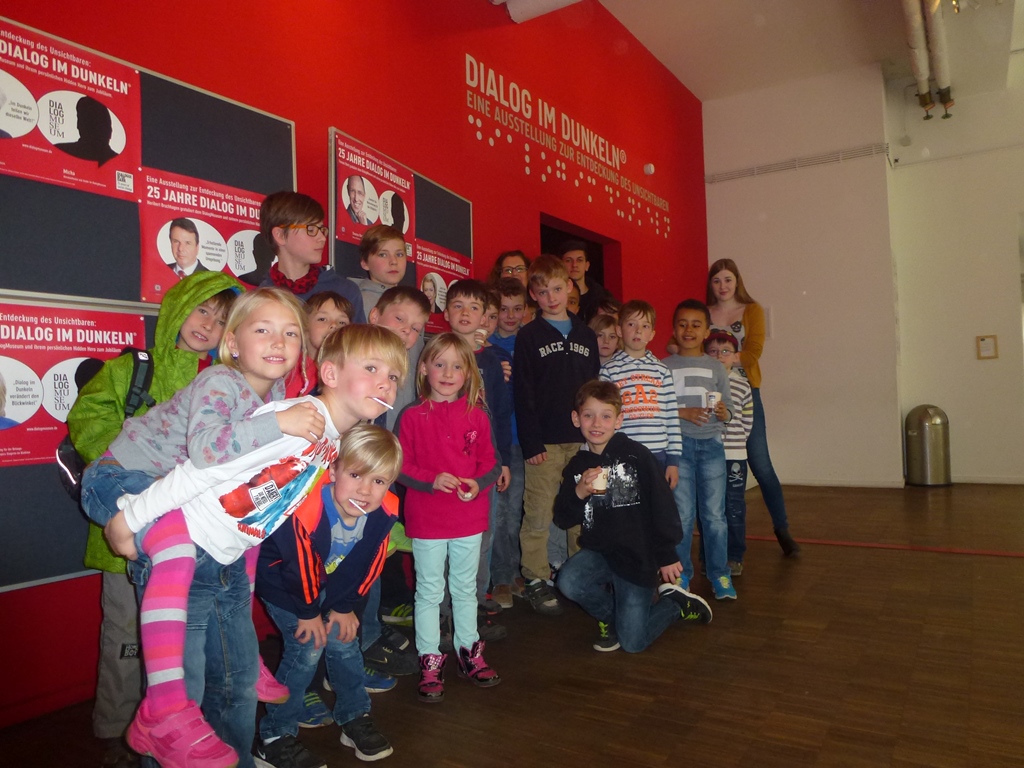 „Das Spielen mit Wasser erfreut jedes Kinderherz. Doch in diesen Tagen hat die Sache, zumindest im Freien, einen Nachteil: Das Wasser ist bitterkalt. „Trotzdem bin ich eine halbe Stunde dringeblieben“, sagt die sechsjährige Emilia und nimmt es dabei mit der Zeit wohl nicht ganz genau. Sie meint auch ihre Füße und nicht den gesamten Körper. Das kleine Wasserbassin, von dem sie spricht, stand am Ende des „Barfußpfades“, der im Hof der Schule Kirchgarten aufgebaut war. Der Pfad war Bestandteil des „Osterferien-Special“, das die städtische Kinder- und Jugendförderung (KiJuFö) anbot. Für das Motto „Mit allen Sinnen“ meldeten sich 20 Kinder im Alter von fünf bis zwölf Jahren an, um drei Tage lang von 9 bis 15 Uhr ihre Sinne zu schärfen. Höhepunkt war eine Fahrt ins Dialogmuseum nach Frankfurt. In dieser Einrichtung, die auch als Blindenmuseum bezeichnet wird, führen Personen ohne Augenlicht die Besucher durch lichtlose Räume, in denen Alltagssituationen warten. Der künstlich herbeigeführte Verlust der gewohnten Sehkraft führt dabei zu beeindruckenden Erfahrungen, die die verbliebenen Sinne in den Mittelpunkt rücken.