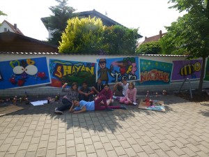 Stylisches Graffiti an Grundstücksmauer nahe des Spielplatzes in Sickenhofen