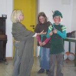 Der dritte und somit vorletzte Tag der Osterfreizeit wurde für eine theaterpädagogische Einheit genutzt. Die Kinder erarbeiteten in drei Kleingruppen ein eigenes kurzes Theaterstück. Die Rollenverteilung der Robin Hood-Sage – Bruder Tuck, Little John und Robin Hood – war die alleinige Vorgabe der Bertreuer/innen und somit der Kreativität der Kinder keinerlei Grenzen gesetzt. Bastelmaterialien wie Stoffe, Farben, Schnüre und Theaterschminke dienten dazu, Kostüme für die Vorführung in eigener Regie herzustellen. Die Aufführung gegen späten Nachmittag war ein voller Erfolg, ebenso der darauf folgende „Bunte Abend“ mit Disco-Musik, Spiel und Spaß. Ein Limbo-Contest vertrieb Heimweh und Kummer.