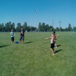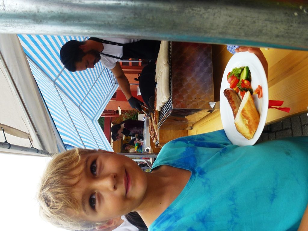 Auch die aufgestellten Bierbänke waren rasch gefüllt und am Stand der SG Rot-Weiss Babenhausen, die wie jedes Jahr Bratwurst und Pommes verkauften, bildeten sich lange Schlangen. Kaum enden wollte auch der Ansturm auf die kleinen Pizzen, die das Restaurant „Schwartzer Löwe“ erstmals in das Ferienspiele-Fest-Menü einbrachte. „Das ist hier ja wie auf dem Volksfest“, sagte 1. Stadtrat Kurt Lambert, der den urlaubenden Bürgermeister vertrat und das Fest zum Anlass nahm, sich bei allen beteiligten Vereinen zu bedanken – allen voran beim TSV Harreshausen, der sein Gelände und Spielmaterialien zur Verfügung gestellt hatte.