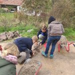 Der Montag führte die Gruppe ins „Bioversum“ nach Darmstadt-Kranichstein. Hier wurde im Freilandlabor des Bioversums gemeinsam mit einer Biologin die heimische Flora und Fauna unter die Lupe genommen. Spielerisch konnten die Kinder entdecken, welche Krabbeltierchen der Gattung der Insekten zuzuordnen sind, wie und wo diese Leben und woran man ein Insekt ganz leicht erkennen kann. Nach dem Kennenlernen der kleinen Krabbler, befassten sich alle näher mit den unterschiedlichen Lebensräumen und der spezifischen Nahrungsaufnahme der Insekten. So wurde anschließend auch der Aufbau einer Blüte und ihre Aufgaben in der Natur erforscht. Das Highlight war aber der Lebensraum „Wasser“, in dem auch viele heimische Insekten zuhause sind. An einer vorbereiteten Fläche lernten die Kinder die Struktur eines Baches kennen und bauten diesen auf einer betonierten Fläche selbst nach. So wurde mit Steinen, Stöcken, Ästen und viel Sand neben einem Staudamm auch ein Flussbett nachgebaut. Über eine Pumpe wurde Wasser in einen Behälter geleitet, der dann über dem erschaffenen Bachlauf ausgegossen wurde. Hierbei konnten die Kinder verschiedene Beobachtungen machen und das Verhalten von Wasser und seinen Bewohnern hautnah erleben und erforschen.